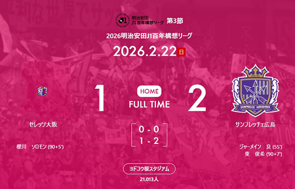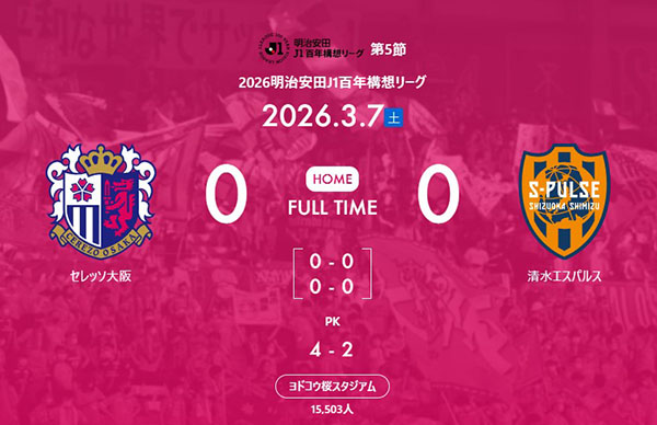 試合はそのまま2-0でセレッソの勝利となった