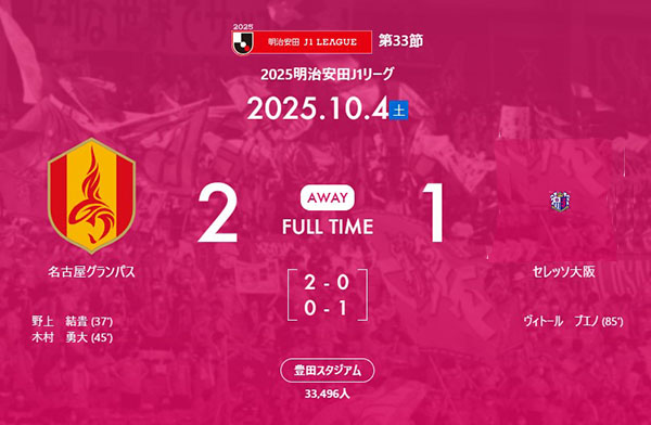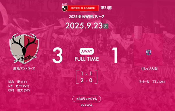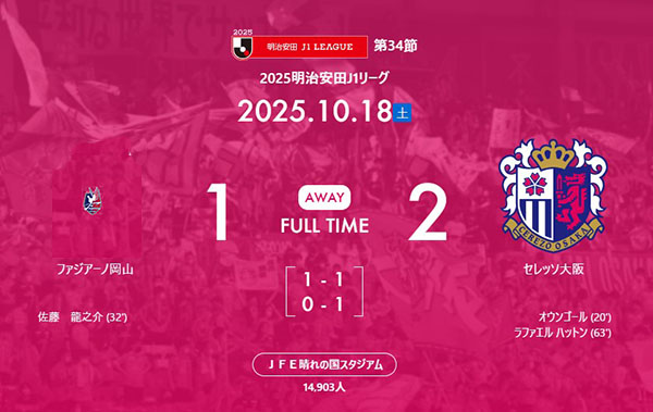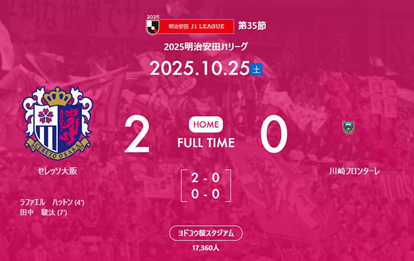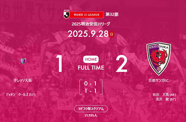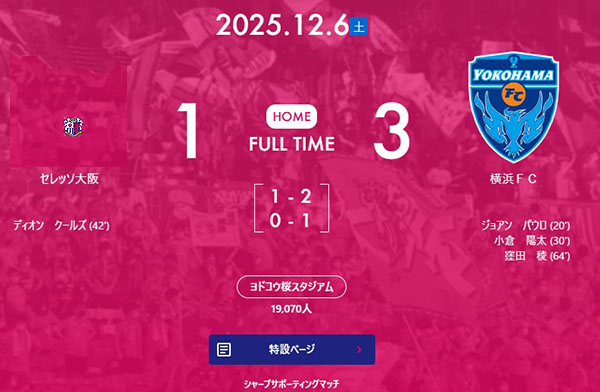 その後、両チームゴールなく2-1でセレッソの勝利で試合を終えた
