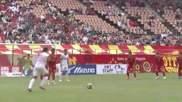 後半40分 ブエノ蹴ったFKがそのままゴール左に飛び込んで行った