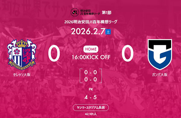 コイントスでセレッソ先発、ガンバゴール裏でのPKとなった