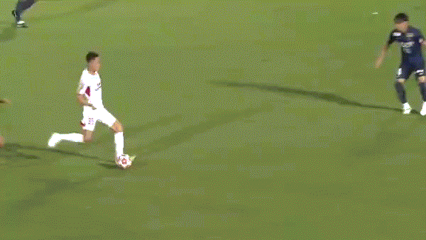 前半5分 ハットンが相手選手に絡まれながらもスルーパスを出すと